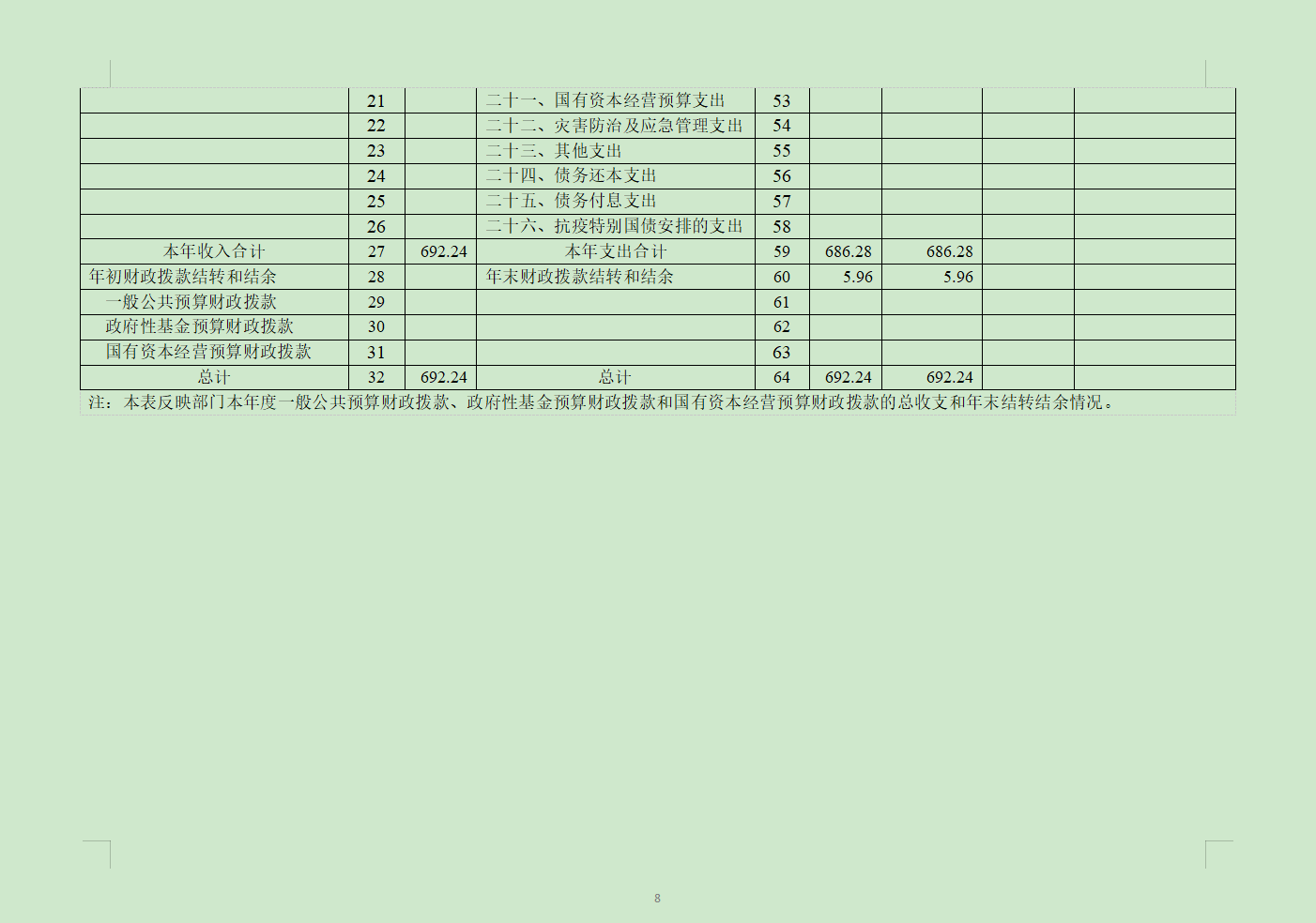 (八)年末結(jié)轉(zhuǎn)和結(jié)余:指單位按有關(guān)規(guī)定結(jié)轉(zhuǎn)到下年或以后年度繼續(xù)使用的資金。
