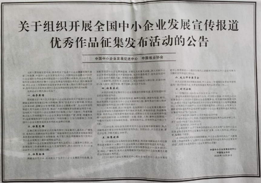 全國中小企業(yè)發(fā)展宣傳報道優(yōu)秀作品征集發(fā)布活動正式啟動