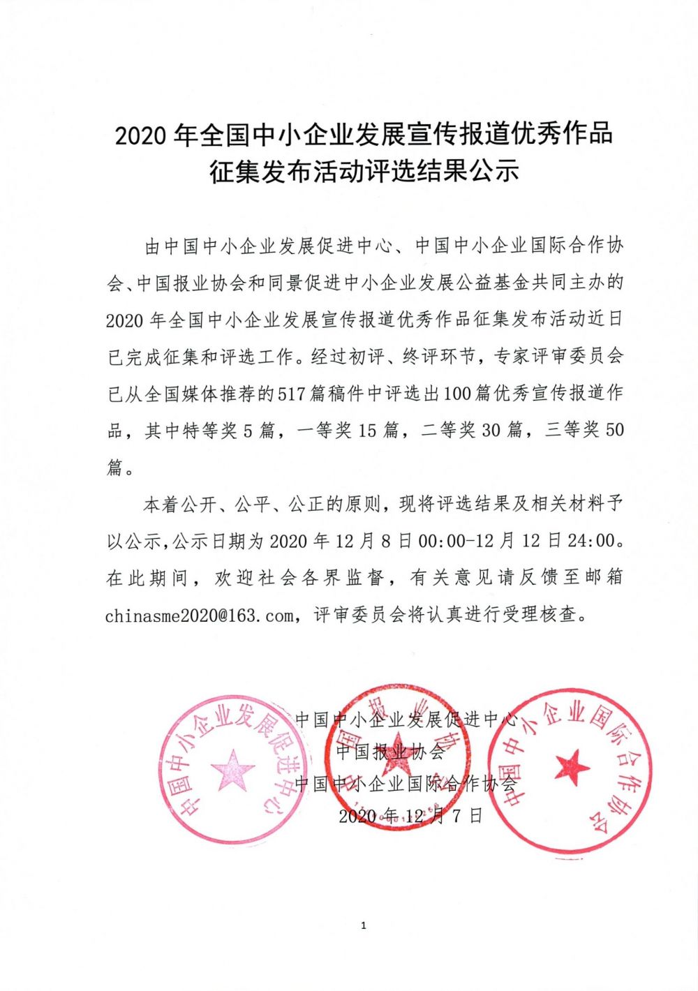 2020年全國(guó)中小企業(yè)發(fā)展宣傳報(bào)道優(yōu)秀作品征集發(fā)布活動(dòng)評(píng)選結(jié)果公示