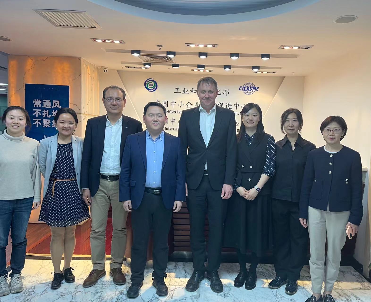 政策研究處處長金鐵鷹介紹了中心基本情況,特別是推動(dòng)中德中小企業(yè)國際合作的相關(guān)工作。約恩·哈登畢克先生高度評價(jià)了中心在中德中小企業(yè)經(jīng)營管理人員培訓(xùn)項(xiàng)目所做的工作,重點(diǎn)介紹了卡爾·杜伊斯堡公益中心的情況和工作內(nèi)容。雙方希望在現(xiàn)有良好合作的基礎(chǔ)上,深化溝通聯(lián)系,繼續(xù)開展中德中小企業(yè)培訓(xùn),為兩國中小企業(yè)合作搭建交流橋梁,助力中小企業(yè)國際化發(fā)展。
